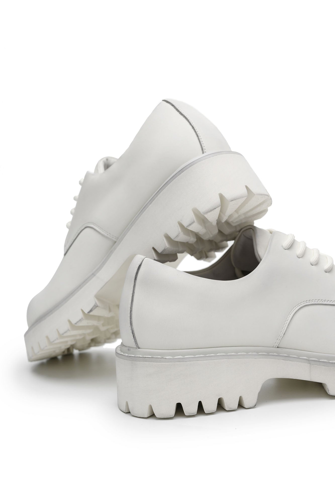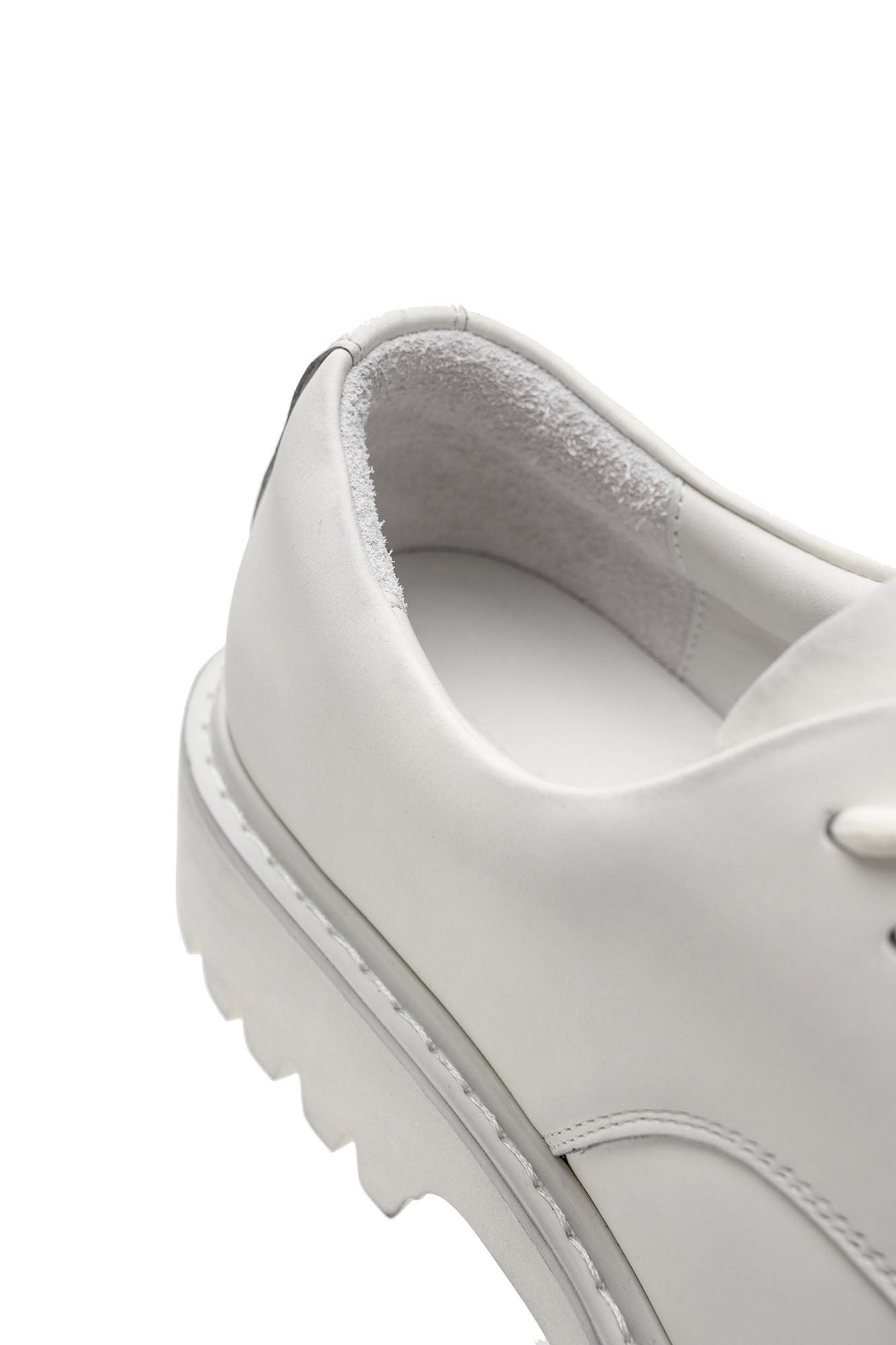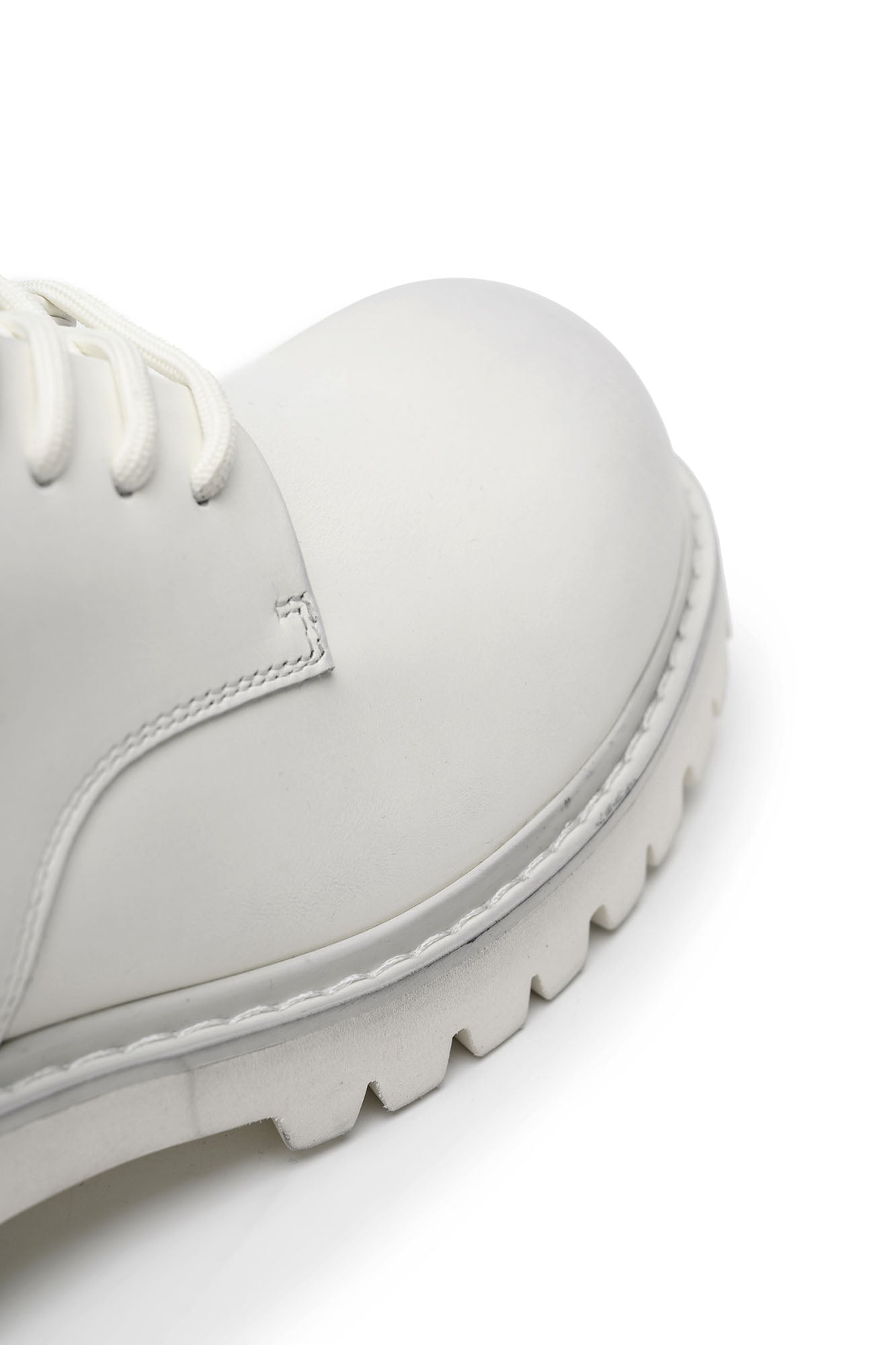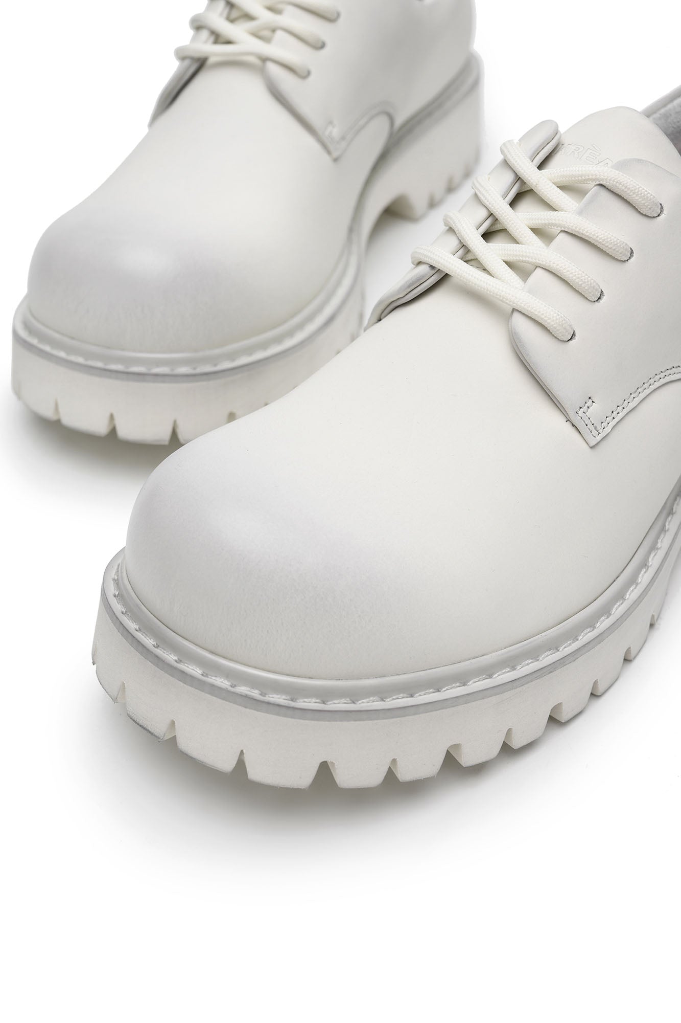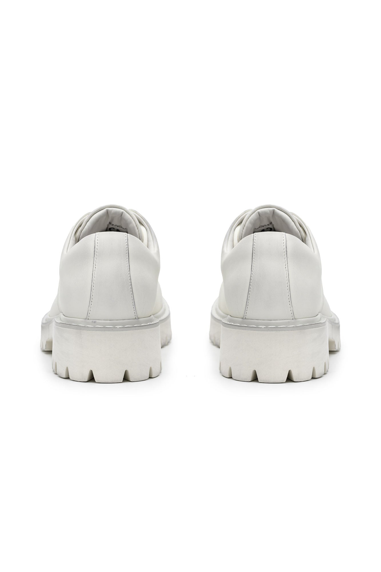 This derby shoe reworks a timeless silhouette with bold, utilitarian detailing and artisanal surface treatment. Crafted from premium leather with a matte finish, it undergoes a distressing process that lends a subtly weathered character. The robust chunky sole not only defines its statement look but also adds substantial height, while the rounded toe and padded heel section ensure balanced proportions. A modern fusion of classic craftsmanship and contemporary edge, it stands as a versatile footwear piece.